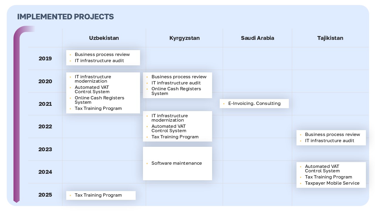 Extensive experience in technical assistance to foreign tax administrations allows the FTS of Russia to go beyond the existing products and build a full-custom solution based on the most recent trends in tax technology.